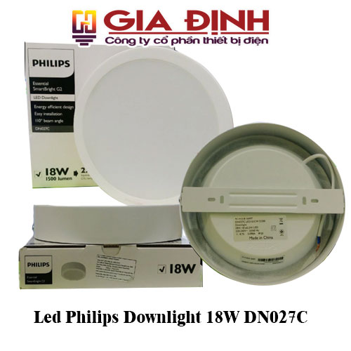 - Đèn Led Philips Downlight DN027C có mức công suất 18W và mức quang thông là 1500 Lm, cho ra nguồn ánh sáng vượt trội, trung thực và vô cùng sắc nét.